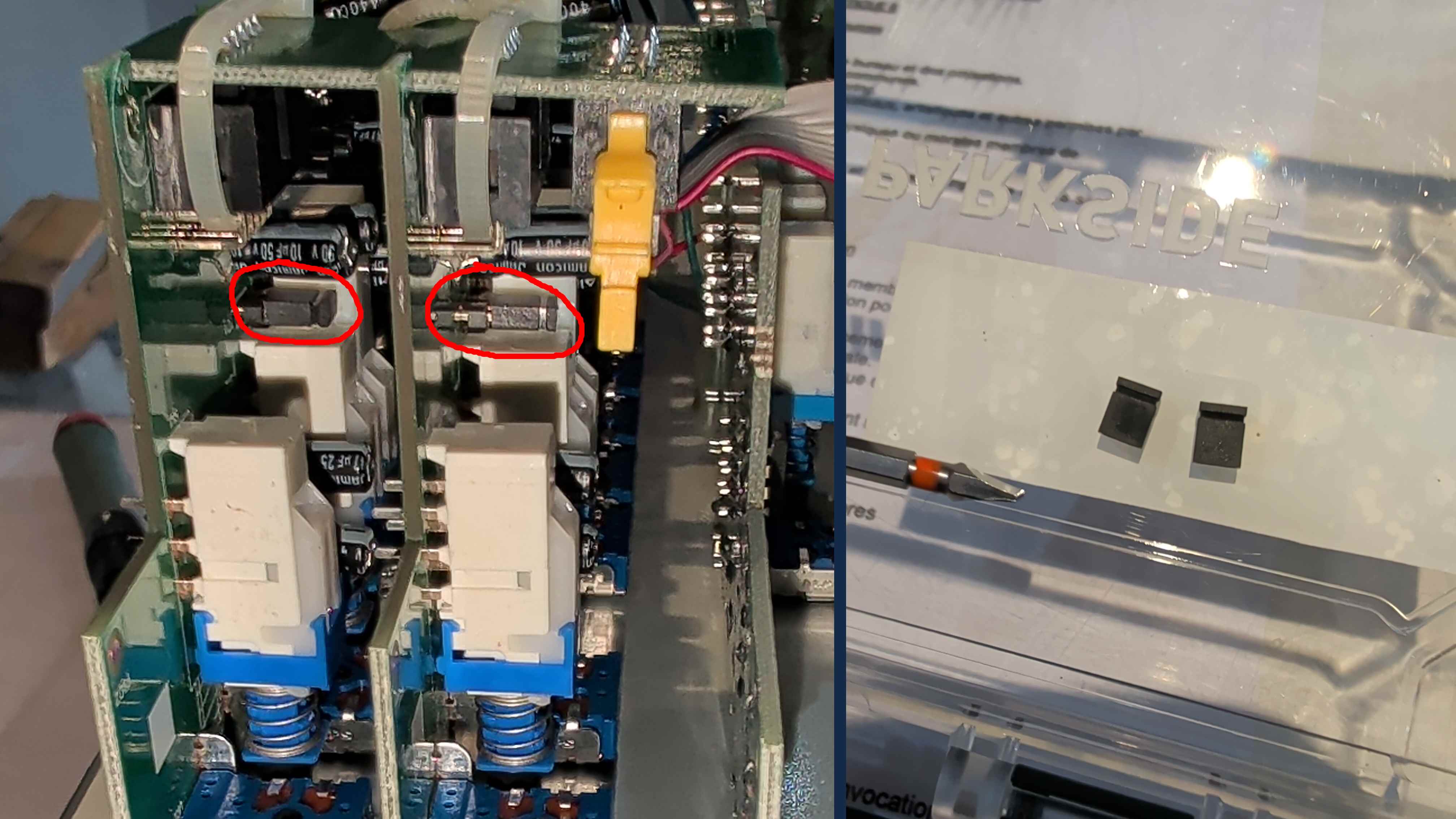 Les cavaliers Ă retirer se trouvent ici, sur les tranches des micros.